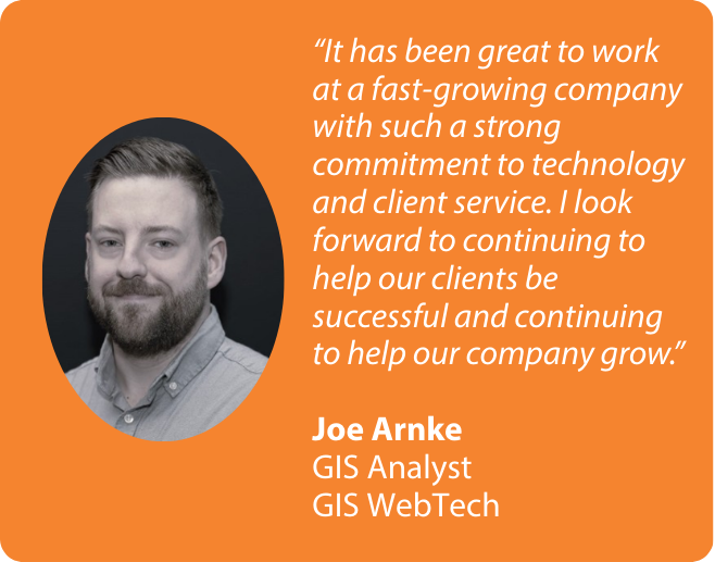 We are pleased to announce the promotion of Joe Arnke to GIS Analyst!