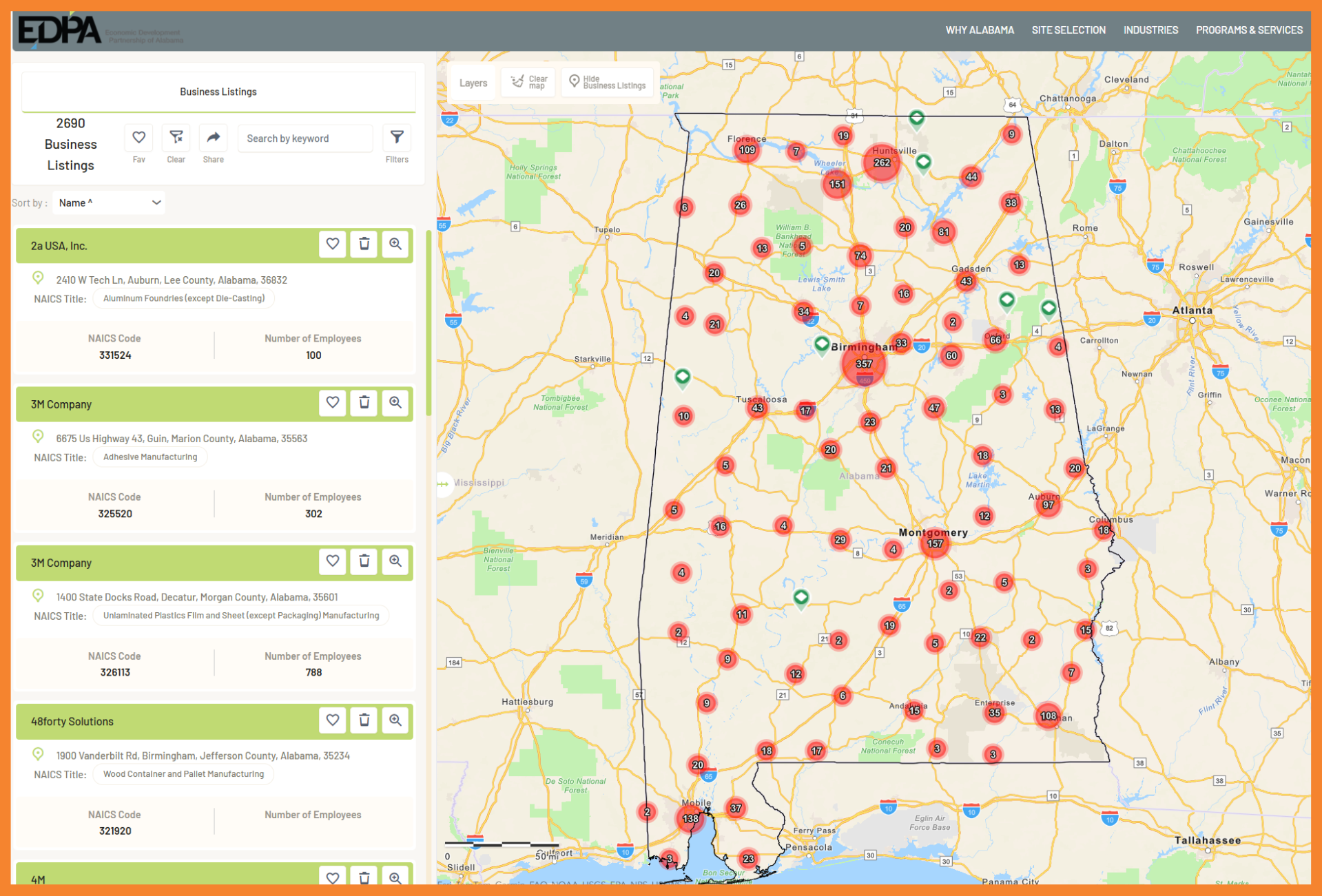 - Empower every user – Local EDOs, chambers, workforce boards and development partners can upload and maintain their own business listings, contributing to a unified, up-to-date statewide or regional resource.