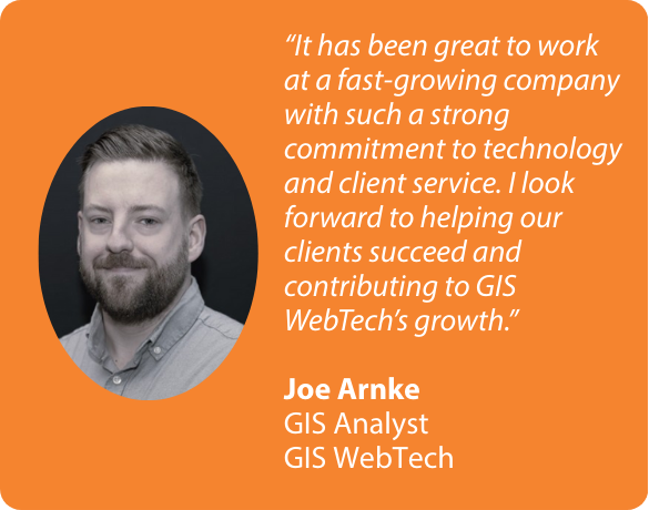 We are pleased to announce the promotion of Joe Arnke to GIS Analyst!